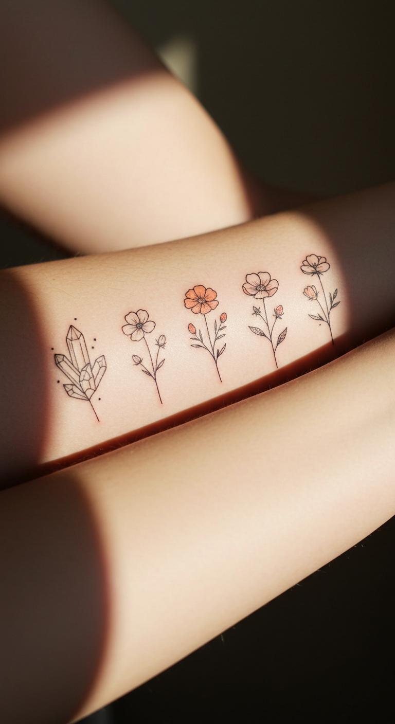 Gather friends or family to create a “garden” of different minimalist flower tattoos that come together visually and symbolically. This idea adds meaning and connects wearers. Schedule tattoos close together or stagger sessions to manage costs.