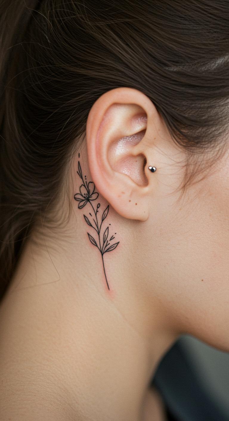 Besides common spots, try minimalist flower tattoos on less typical areas like behind the ear or collarbone. These spots offer privacy yet visibility when wanted. Small tattoos here are budget-friendly and quick to ink. They’re perfect for first-timers or those wanting subtle decoration.
