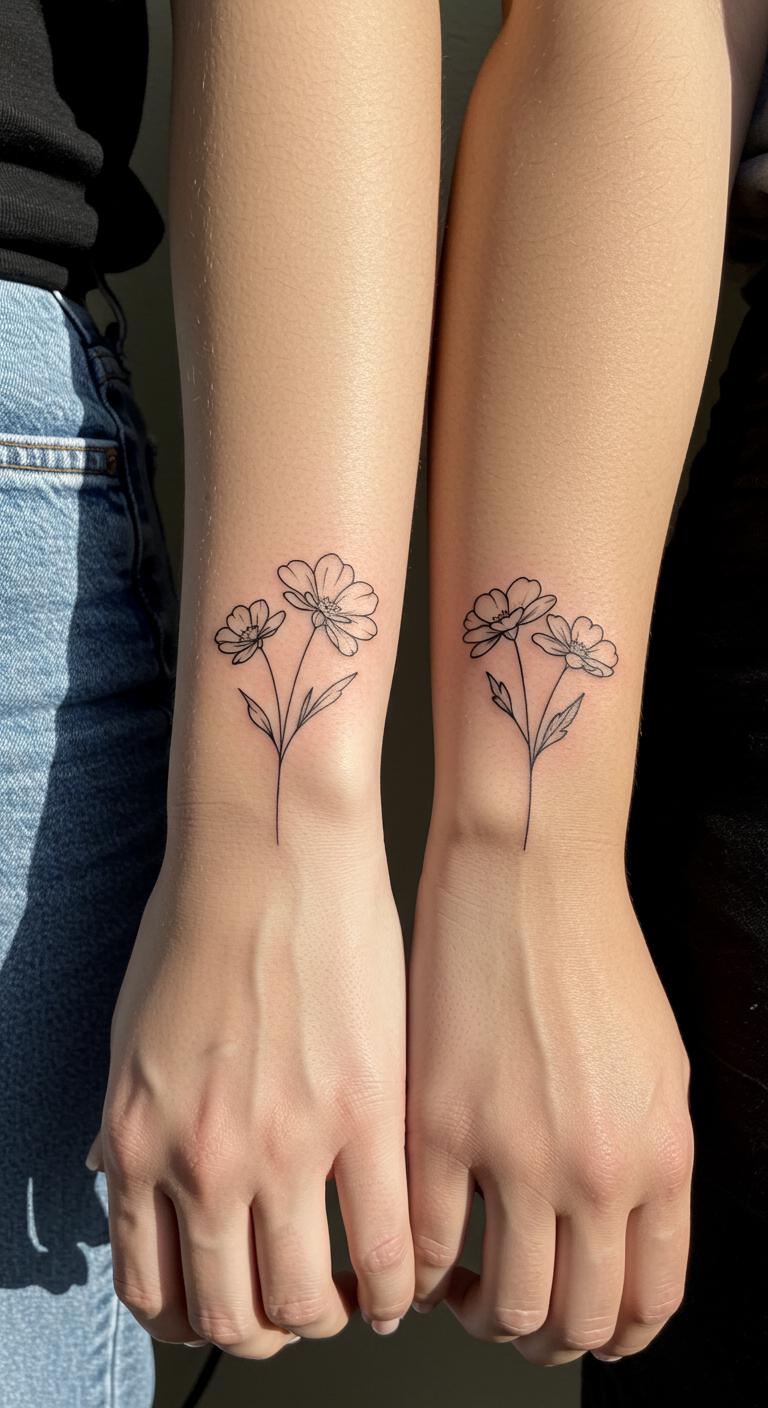 Matching or complementary floral tattoos with friends or family have meaning beyond the design itself. Coordinate with your group on a specific flower, such as a shared favorite bloom or birth flowers, each with minimalist styling. These tattoos tend to be small and affordable. DIY planning by sketching ideas together helps communicate clearly with the artist before booking.
