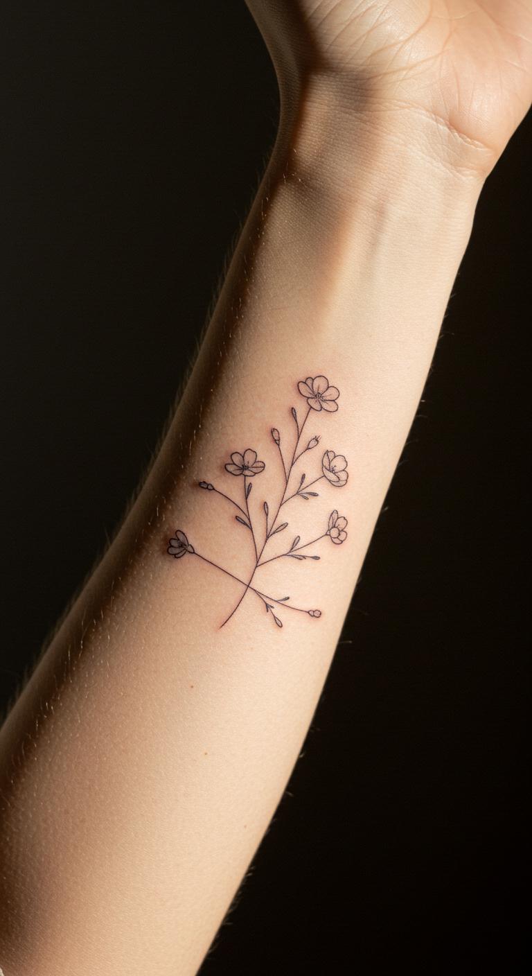 Create a bouquet by combining your birth month flower with those of loved ones. This adds layers of meaning without complicating the minimalist style. Pick flowers with simple shapes—like carnations or violets—and ask your artist to use thin linework. This design can be spaced out over the arm or across fingers for an affordable, customizable piece. A simple tattoo shop consultation helps nail down unique but easy-to-ink flower combinations.