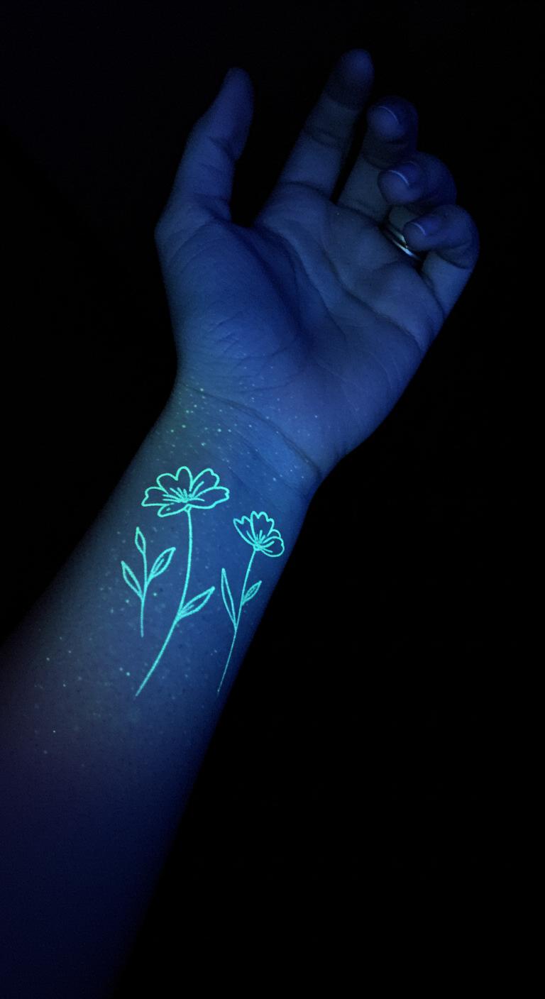Glow-in-the-dark inks add hidden charm for those who want something unique but subtle. Minimalist flowers outlined with this ink appear delicate in daylight and softly glow at night. These tattoos cost a bit more but remain affordable when kept small. Ask the artist about aftercare to maintain glow quality. Temporary glow flower tattoos exist for initial tests.