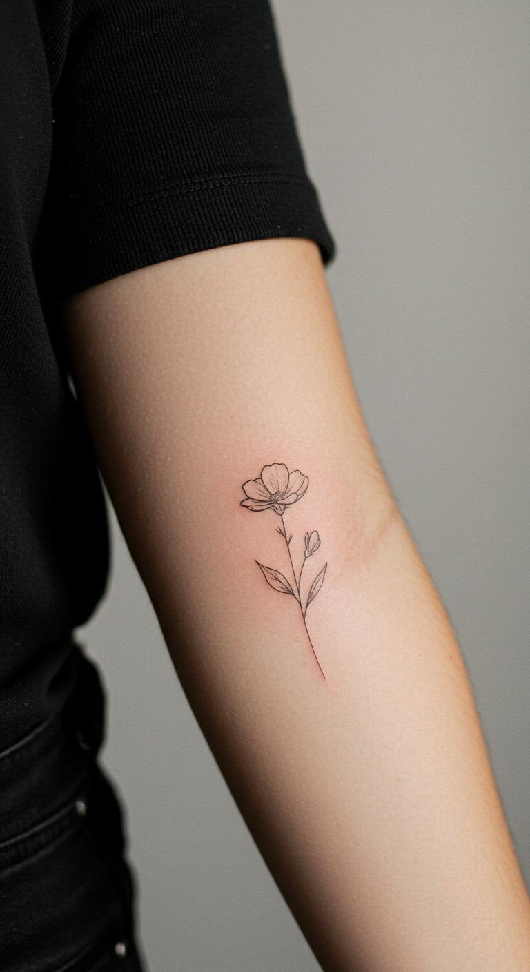 Fine line floral tattoos bring a touch of nature to your arm. Think of a small daisy or rose in thin black ink. This design looks fresh and adds a soft vibe. Start with a basic sketch on paper to see how it flows.