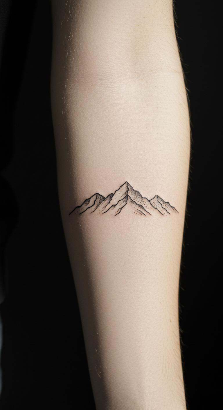 Mountain landscapes depict adventure on your forearm. Think of a simple peak line. It evokes exploration and peace. Sketch mountains from photos.