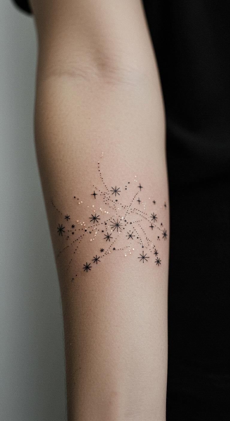 Star constellations light up your forearm. Imagine connected dots for a sign. It sparks wonder and guidance. Plot stars using stargazing apps.