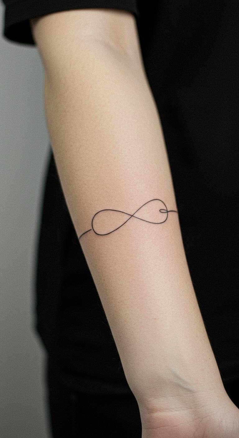 Infinity symbols loop forever on your forearm. Picture a figure-eight line. It stands for endless possibilities. Sketch loops with a string.
