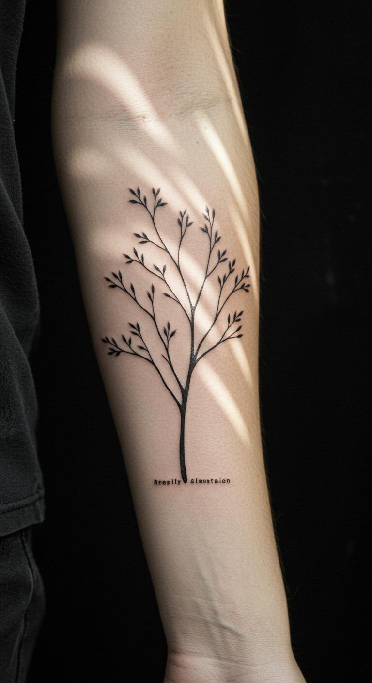 Tree of life designs root on your forearm. Envision simple branches spreading out. It symbolizes growth and stability. Draw trees from outdoor sketches.