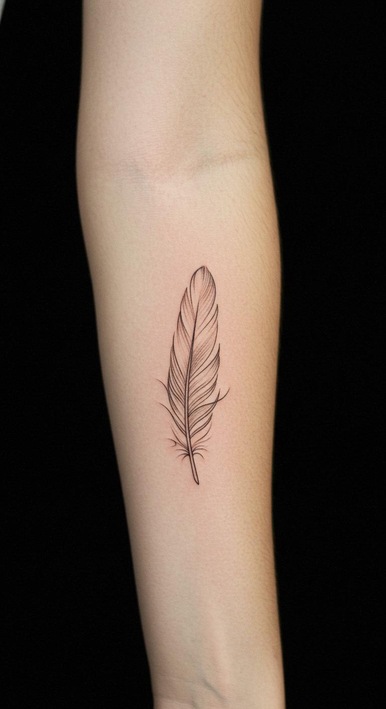 Feather details float on your forearm. Think of a light plume stroke. It suggests lightness and grace. Draw feathers from pillows.