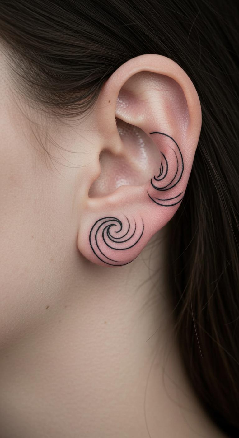 A spiral vortex suggests growth and cycles. It’s a dynamic choice for change. Draw spirals freehand on paper. Practice makes it simple. Get temporary tattoo sheets for $5 or less. Find artists who offer walk-in sessions for quick designs. Position on the ear for easy concealment. Customize the spiral tightness. Use a string to trace spirals on your skin first. This approach is straightforward and budget-friendly.