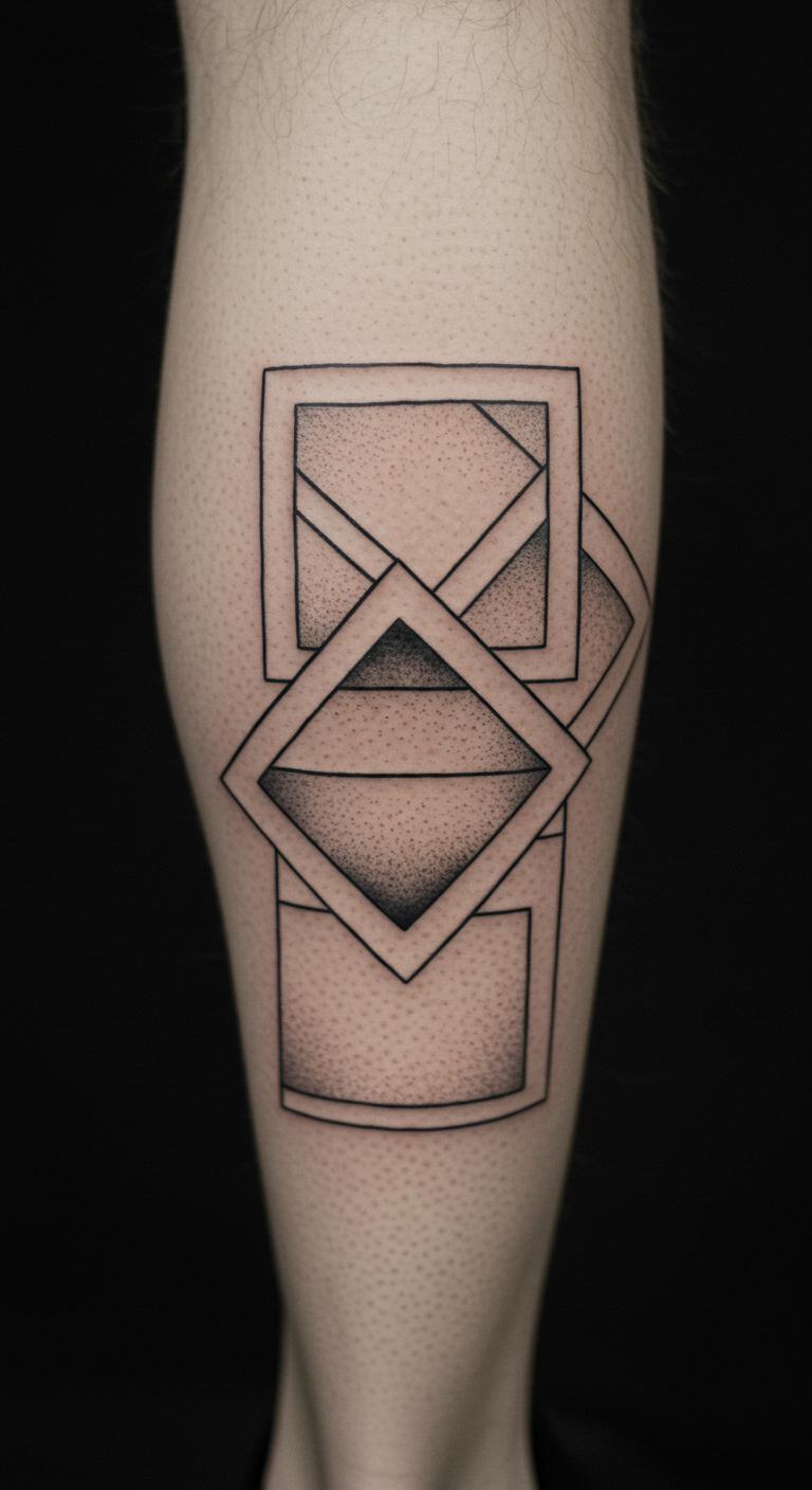 Overlapping squares create layers of meaning, like balance in chaos. Sketch squares and overlap them. Paper and pencil do the trick. Make stencils from old magazines for free. Look for promo deals at tattoo shops. Place on the calf for athletic flair. Change overlap amounts for variety. Test with body crayons from the kids’ section. Keep it practical and low-cost.