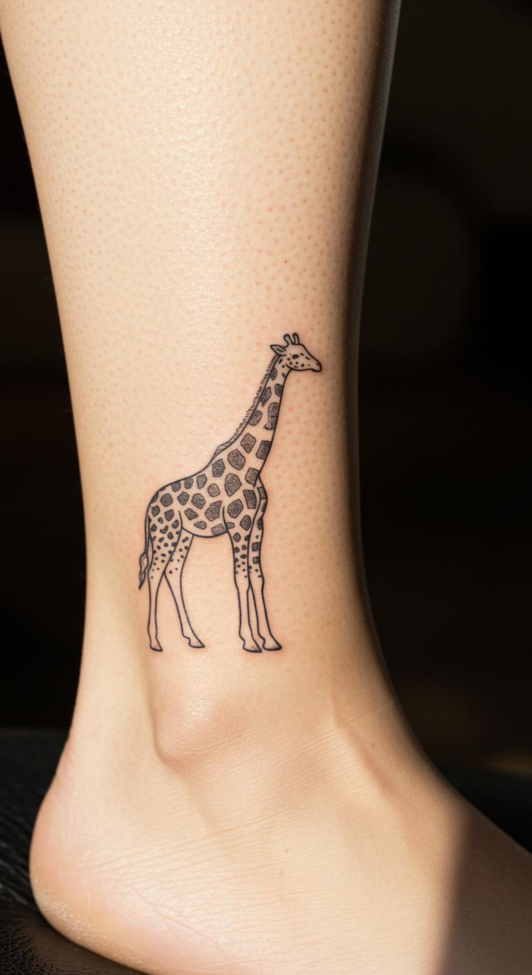 Ankle tattoos keep a giraffe design practical for daily life. It’s easy to cover with socks or show in sandals. Think of it as a nod to adaptability. Draw a quick outline with a pen on your foot. Include a spot pattern you like. Henna options cost $5 and fade naturally. Placement here costs about $50. Keep it dry for the first few days. You wear your story comfortably every day.