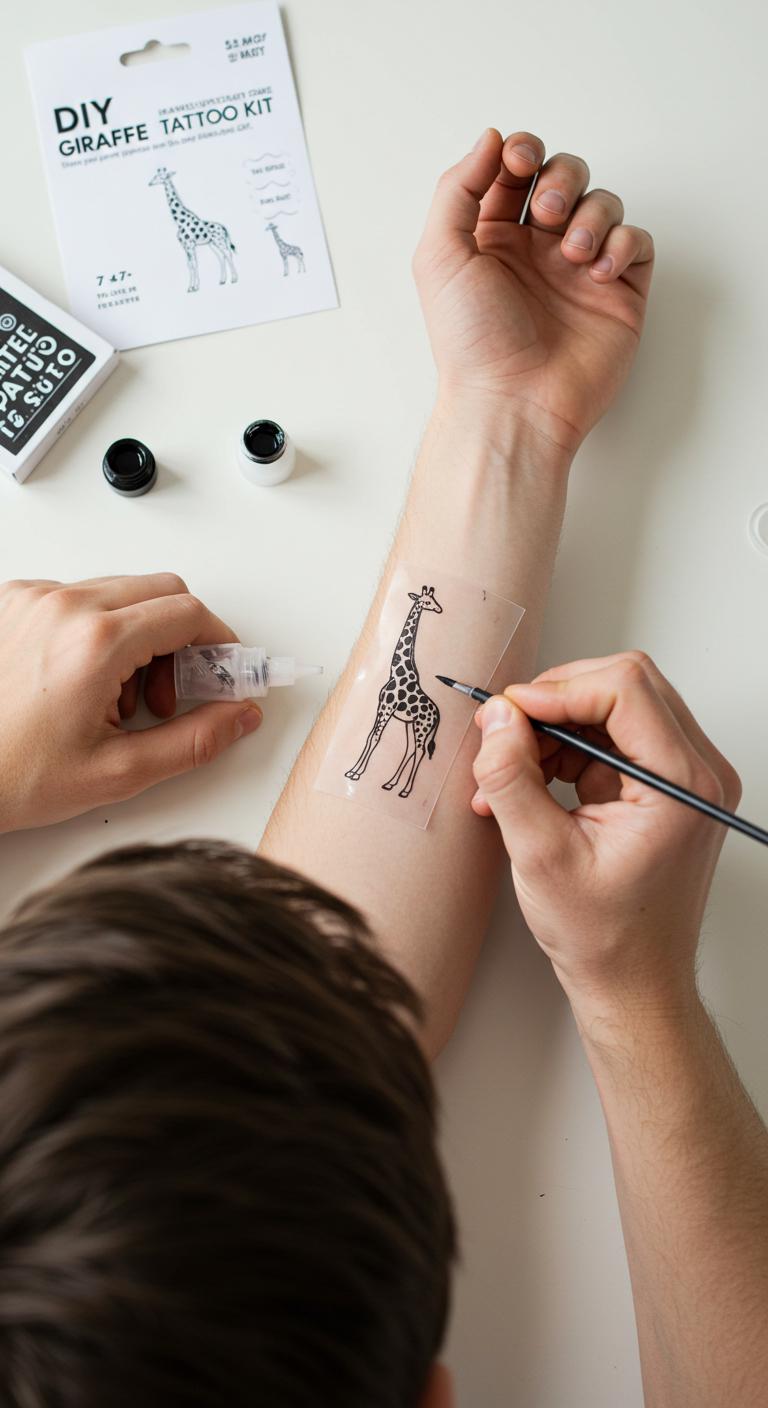 Go for a geometric giraffe to add a modern edge. Shapes inside the outline make it pop subtly. It speaks to strength and patterns in life. Draw grids on paper with a ruler for practice. Include a simple triangle for your favorite symbol. Pick up a DIY tattoo pen for $15 to try at home. Place it on your hand for daily visibility. Expect $70 at a tattoo shop. Moisturize regularly to maintain the lines. You get a unique design without much hassle.