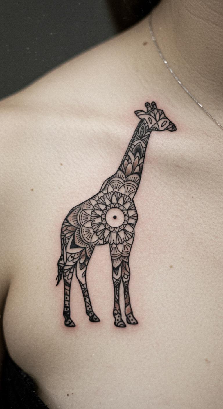 Mandala inside a giraffe adds intrigue. It brings calm patterns. Sketch mandalas freehand. Try with paper cutouts. Mandala kits are $4. Ink for $85. Care daily. You layer meanings.