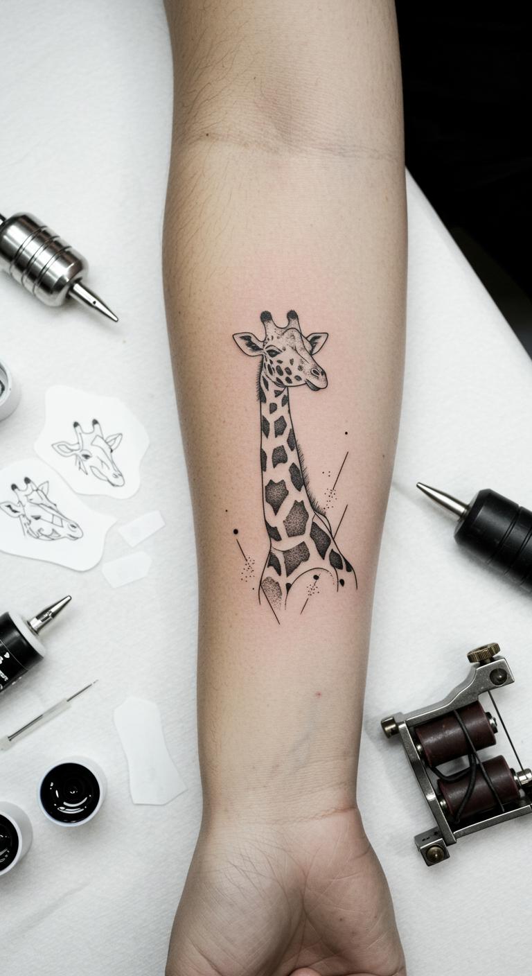 Support causes with giraffe tattoos. Donate part of the cost. Choose eco-friendly shops. You help while inking.