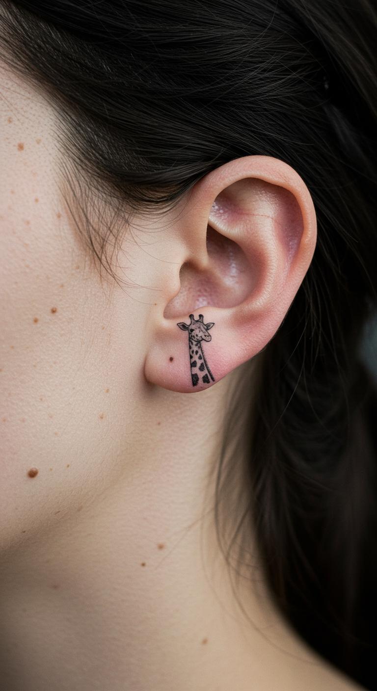 A behind-the-ear giraffe offers a secret touch. It’s small and personal, perfect for close friends. This spot links to quiet strength. Practice with a temporary marker behind your ear. Add a mini element for fun. Stickers for this area are under $2. Artists charge $30 for the spot. Use ear-friendly lotion for care. You keep it private until you choose.
