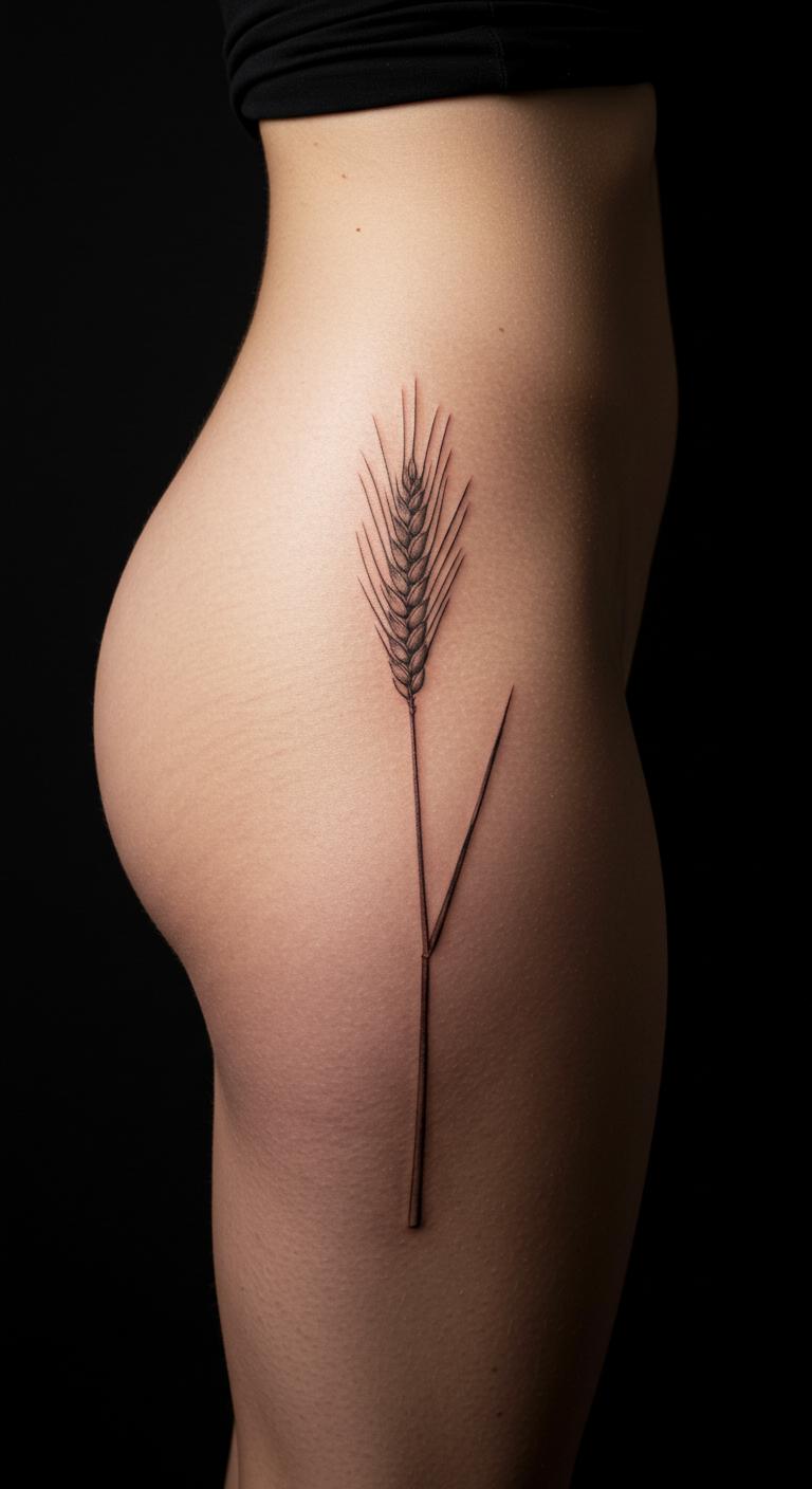 Wheat stalks represent growth on your hip in a minimal way. Draw stalks on paper as a first step. No cost involved. Find nature-inspired deals for about $60. Place it along the curve for flow. App-based previews help refine it. Use simple lines to cut time. Black ink is budget-friendly. Sketch ideas at home. This design feels grounded.