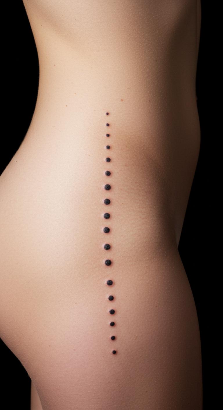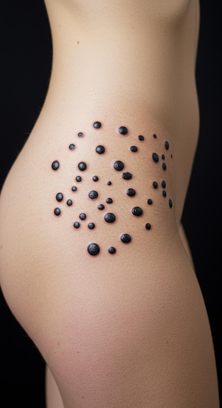 Spiritual dot patterns offer meaning on your hip. Draw dots in a row on paper. Free to do. Search for dot tattoos at $50. Place them evenly. Apps aid in planning. Basic setup cuts session length. Black dots are economical. Practice on paper. This design adds depth.