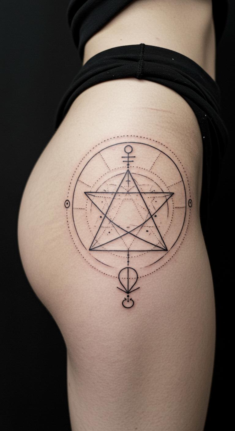 Occult symbols add mystery to your hip simply. Draw a symbol on paper first. Free activity. Find such designs for $50. Position carefully. Digital mocks help. Keep it basic for quick work. Black design saves money. Practice drawing. It’s an intriguing choice.