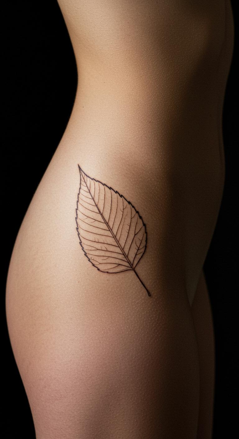 A leaf outline on your hip connects you to nature’s simplicity. It’s about growth in a small package. Use a leaf from your yard to trace on paper as a DIY start. It costs nothing and sparks ideas. Find deals at local studios for nature motifs—often under $70. Place it low for easy coverage. Edit a photo of yourself with free apps to see it fit. Opt for one leaf to keep the tattoo short and sweet. Black lines help with affordability. Sketch a few options at home to decide. This design grows with you over time.