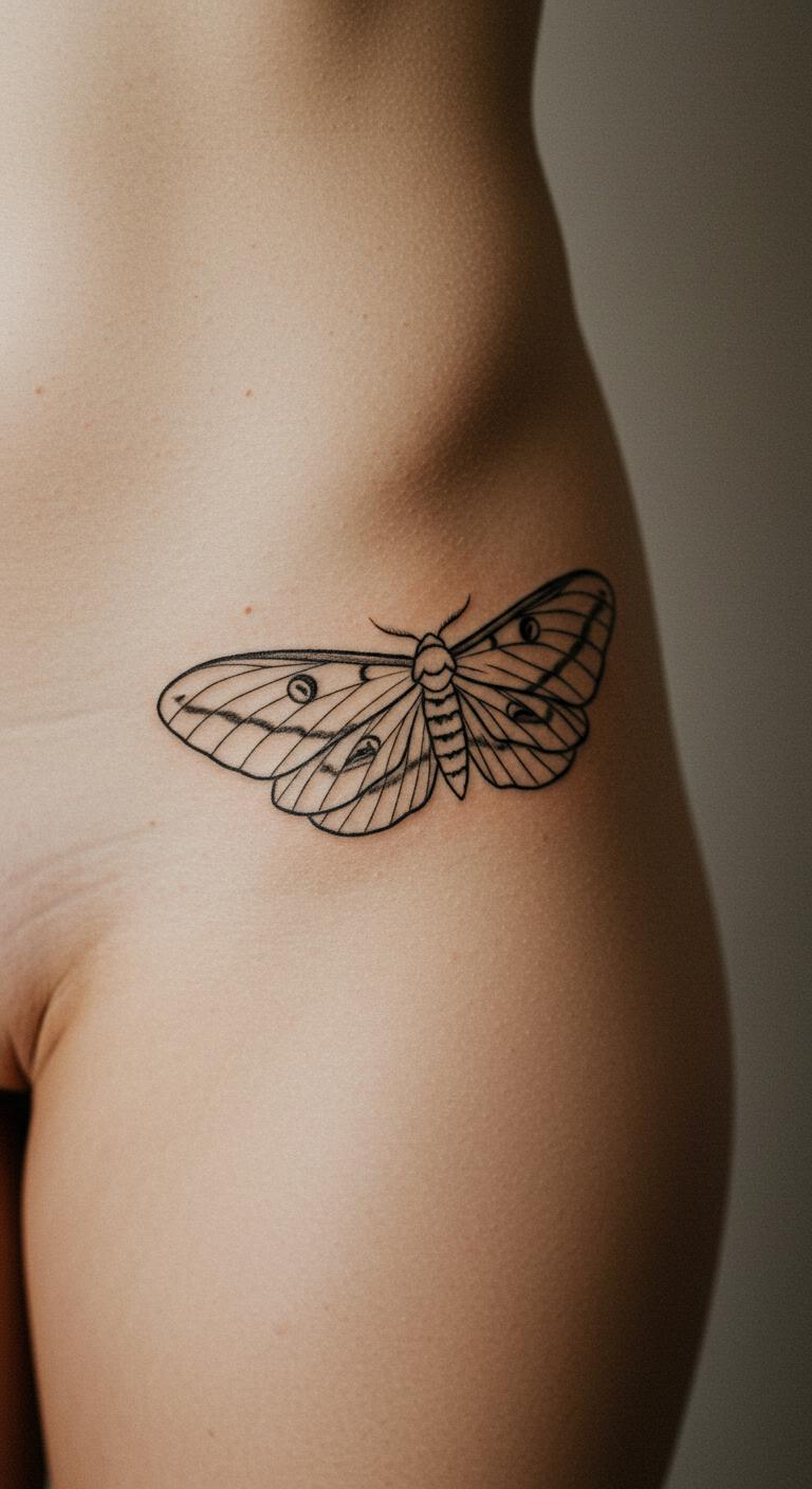 Moth wing forms show change on your hip. Sketch wings on paper. No cost. Find wing tattoos for $60. Place for effect. Digital edits assist. Simple form is quick. Black ink is budget-friendly. Draw options. It’s a transformative pick.