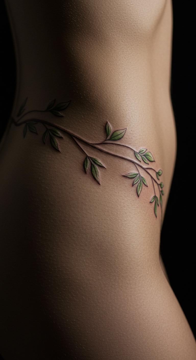 Vine trail paths add a natural path to your hip. Draw a vine on paper. No expense. Look for vine tattoos at $60. Follow the curve. Apps let you see it. Simple trail is fast. Black lines save money. Draw variations. It’s a growing choice.