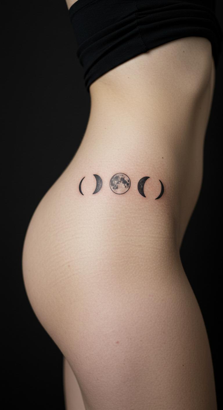 Moon phases on your hip tell a story of cycles and time. Start by drawing crescents on paper to plan. It’s an easy, free activity. Check for moon-themed specials at tattoo spots—prices around $60. Arrange them vertically for flow. Use your phone’s camera to test placements digitally. Limit to a few phases for a faster session. Simple black ink cuts costs. Practice with a pencil first to refine your choice. This tattoo adds a rhythmic touch to your look.