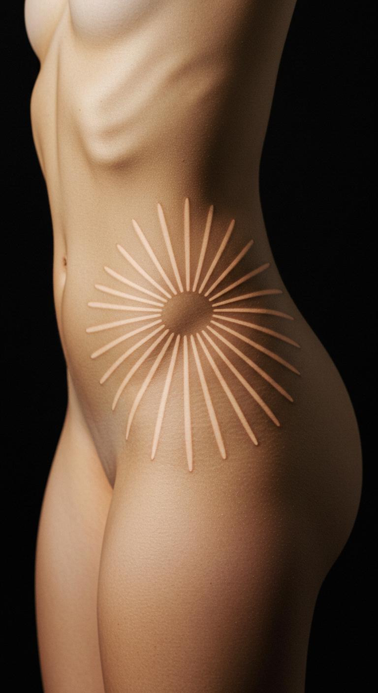 Sun rays give your hip a warm, energetic feel. Draw radiating lines on paper to visualize. This DIY method is quick and cost-free. Look for sun designs in budget packages—about $50 at some places. Position rays outward for impact. Overlay them on a selfie using a free app. Keep the design basic to save on time. Black only means lower fees. Try drawing on your hand first. It’s a bright addition to your style.