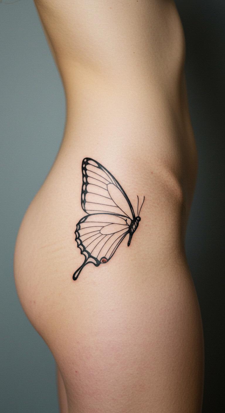 Butterfly wings on your hip symbolize transformation with ease. Sketch a wing shape at home for ideas. Use paper and a pen—it’s free. Find artists offering insect motifs for $70 or less. Place it on the side for grace. Edit your photo with phone tools to preview. Opt for outline only to shorten the process. Black ink keeps it affordable. Draw a few versions to pick. This design brings lightness to your body.