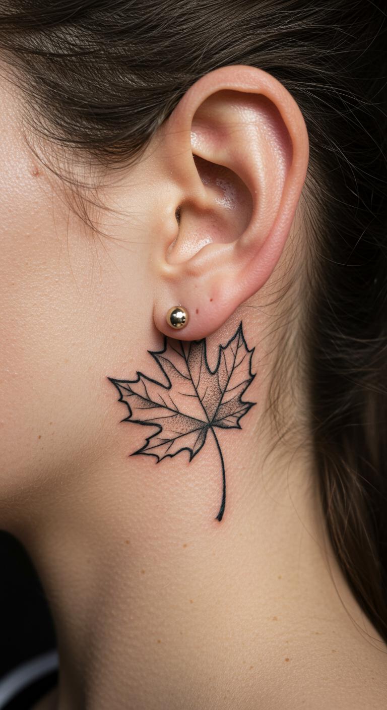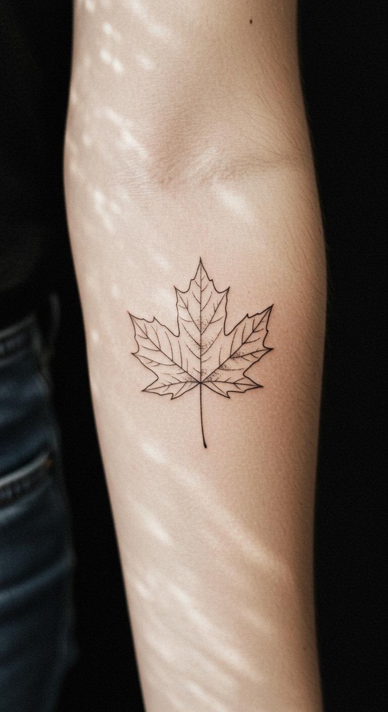 Capture fall vibes with a maple leaf that nods to changing seasons. Keep the design basic with jagged edges for that authentic feel. Practice at home by stamping a leaf shape with ink from a cheap craft set—under $5 online. Put it behind your ear for a hidden gem. Go budget-wise by scheduling with a new artist who offers deals. Add a small variation, like a slight curve, to personalize it. This tattoo represents transformation, perfect for life changes. Use a gentle moisturizer post-tattoo to maintain it. It’s a straightforward choice for timeless appeal.
