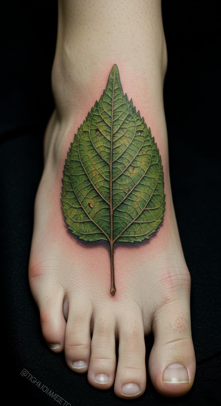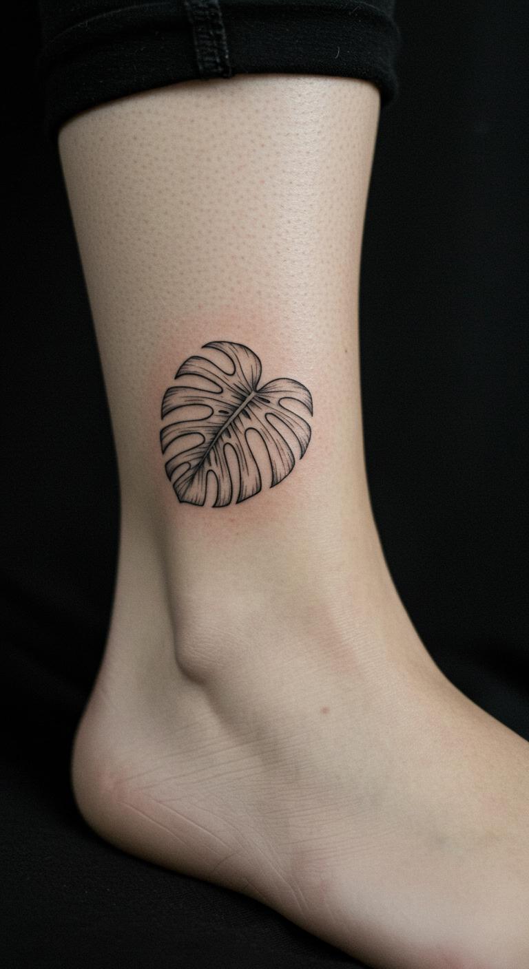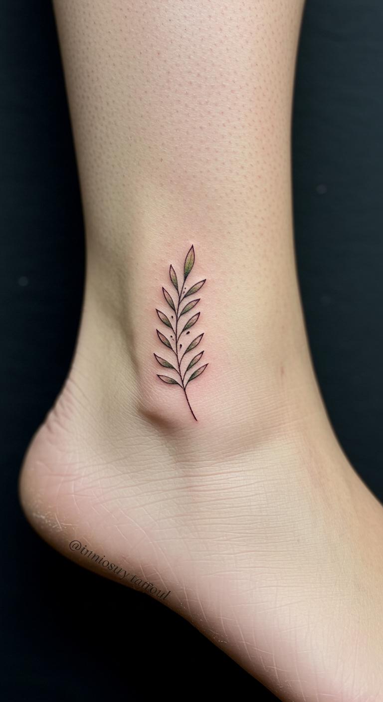 A small ankle leaf is discreet and cute. Trace with thread. Ankle for style. Tiny tattoos are cheap. Add a twist. Symbolizes subtlety. Quick healing.
