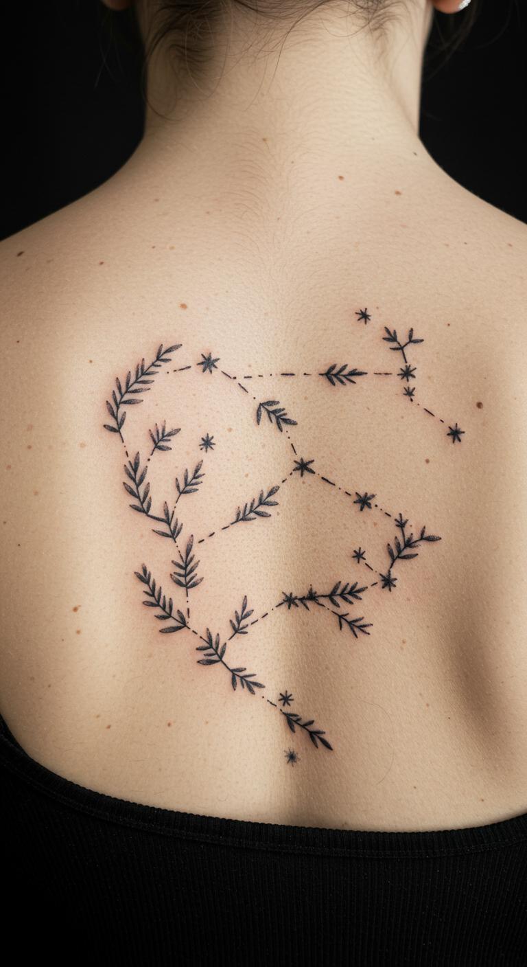 Arrange leaves like stars for a cosmic feel. Plan on paper first. Place on your back for space. Keep it small for savings. Make patterns your own. Symbolizes vast connections. Simple maintenance helps.