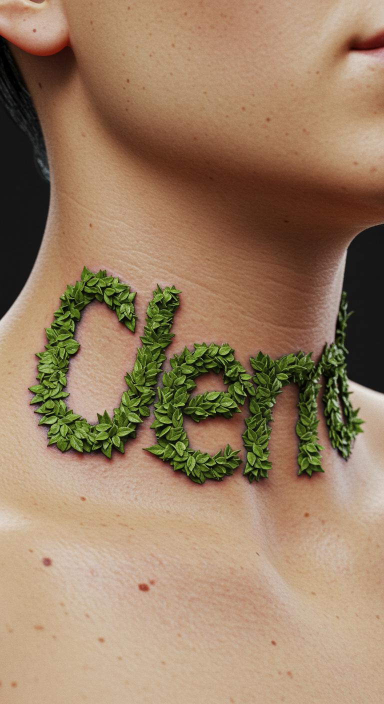 Form words with leaf veins creatively. Practice writing at home. Neck for statement. Minimal text saves. Make it your phrase. Represents expression. Easy to maintain.