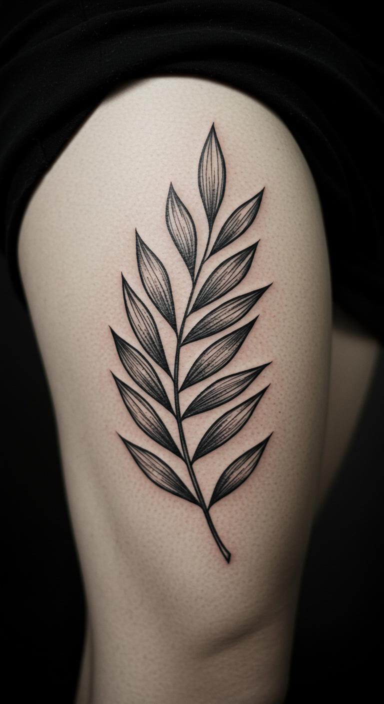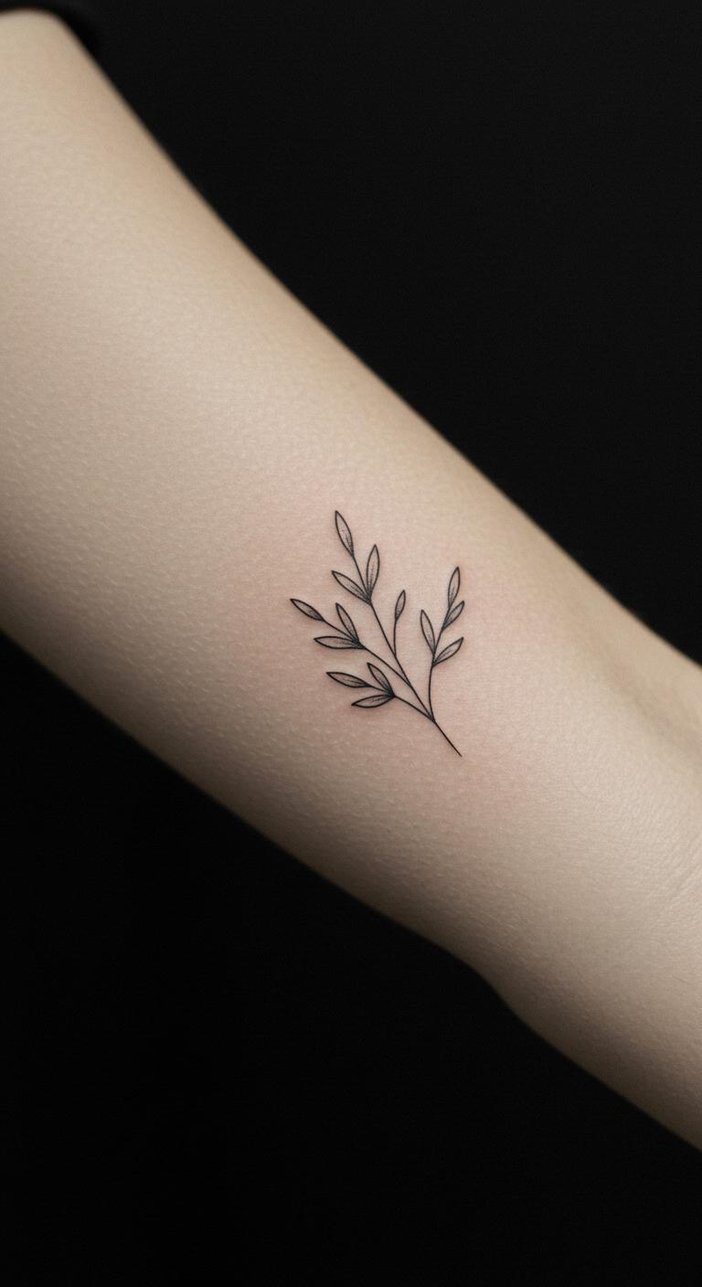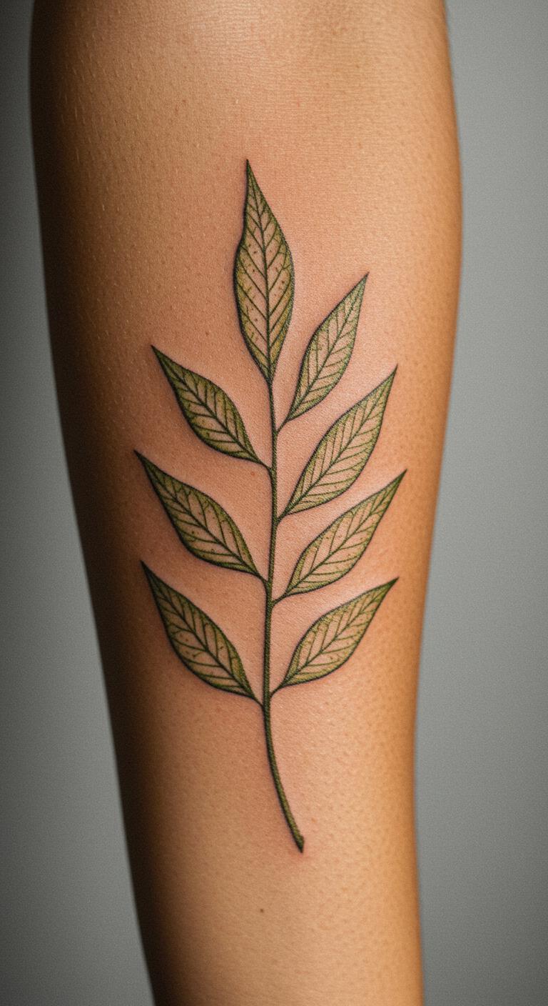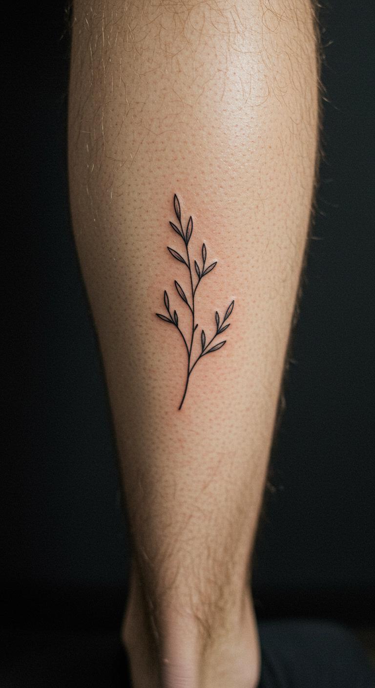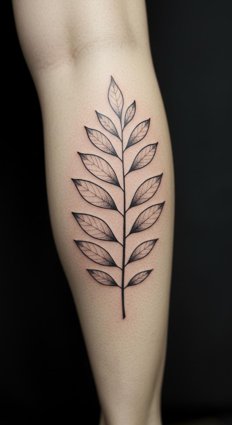 A sprig of leaves offers gentle flow. Draw a branch at home. Calf for movement. Compact design is affordable. Vary the leaves. Symbolizes growth. Daily lotion helps.