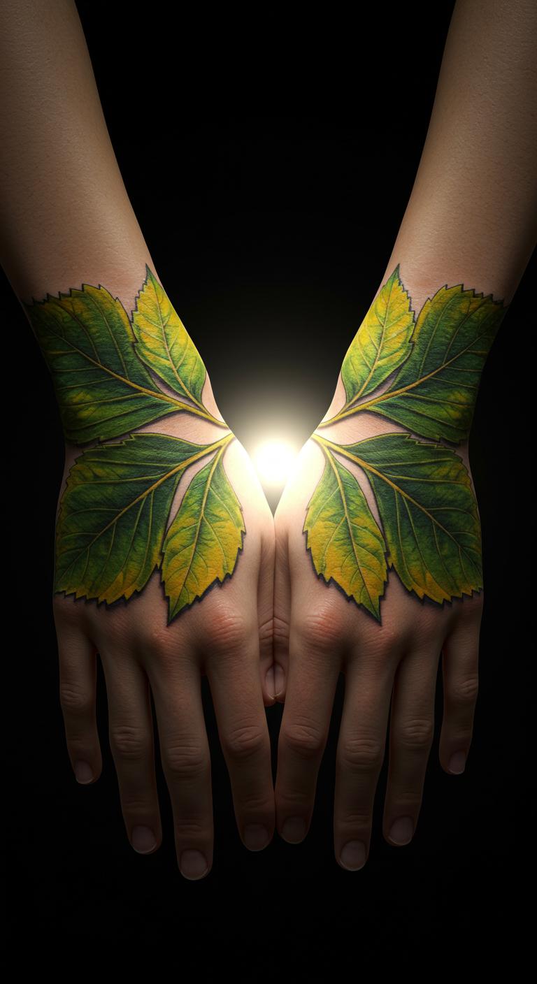 The wrist offers a prime spot for a leaf that you can show or hide. Go with a streamlined shape for comfort. Practice with a band-aid and marker—items you likely have. This location suits daily wear. Select a quick design to lower costs. Make it special by mirroring your hand’s movements. It reminds you of growth every day. Keep it clean with soap and water. Easy and effective for beginners.