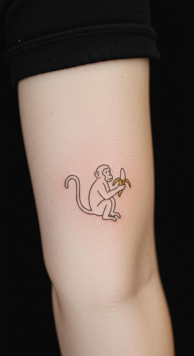 Add a banana to your monkey for a playful touch. It tells a story in one line. Practice drawing on paper at your desk. This design stays affordable, about $70 total. Try fruit-shaped stencils at home for fun. Make it unique with a curved banana. Bold the key: use stencils. Put it on your arm for easy viewing. Find a local pro for quick work. Enjoy the humor it brings.