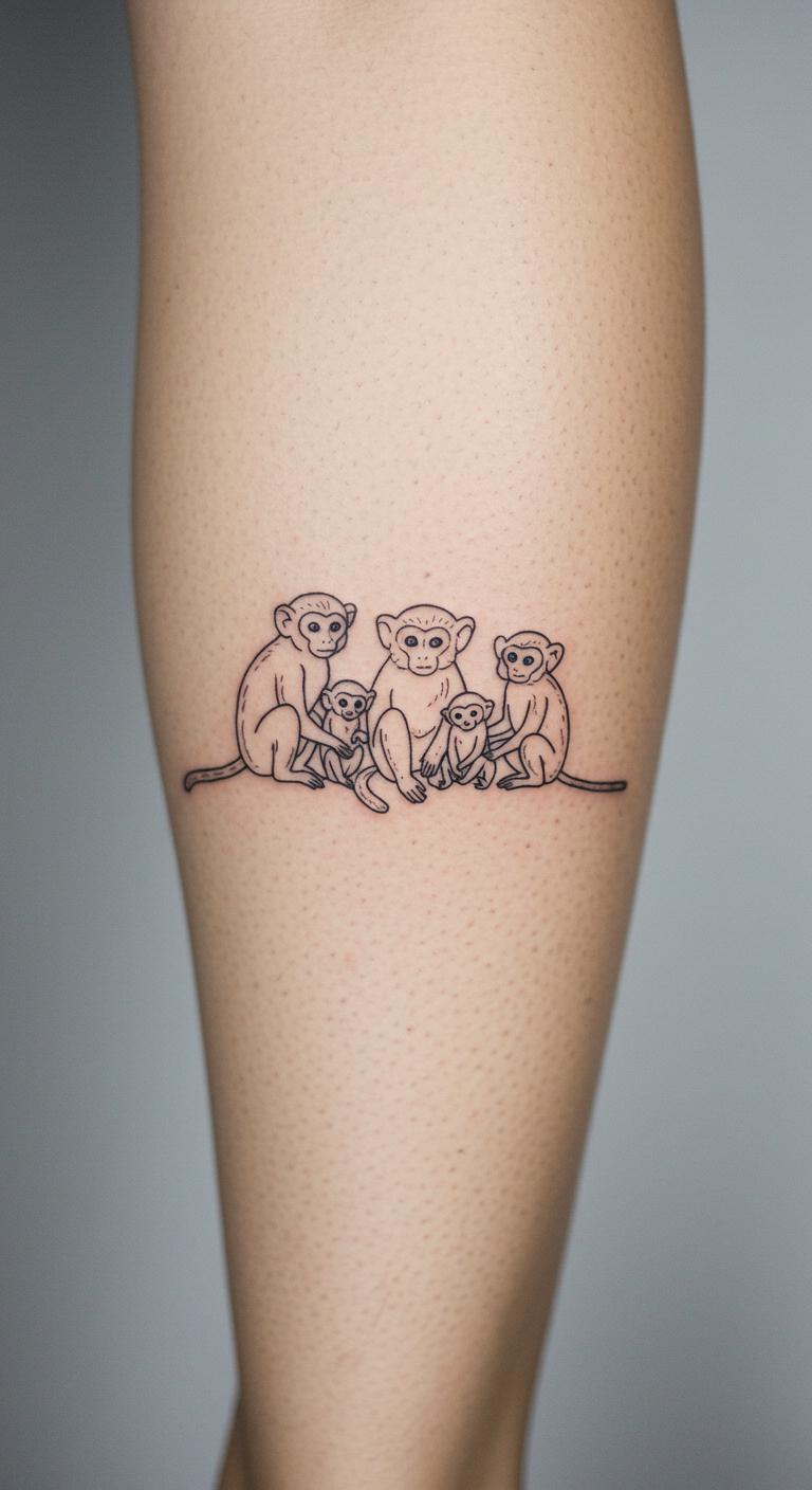 Show family ties with a group of titi monkeys. It’s about bonds in simple lines. Sketch groups on a notebook. This idea costs around $90. Test with family drawings at home. Arrange them to fit your family. Bold the key: sketch groups. Place on your calf for significance. Choose an affordable artist. Do it together with loved ones.