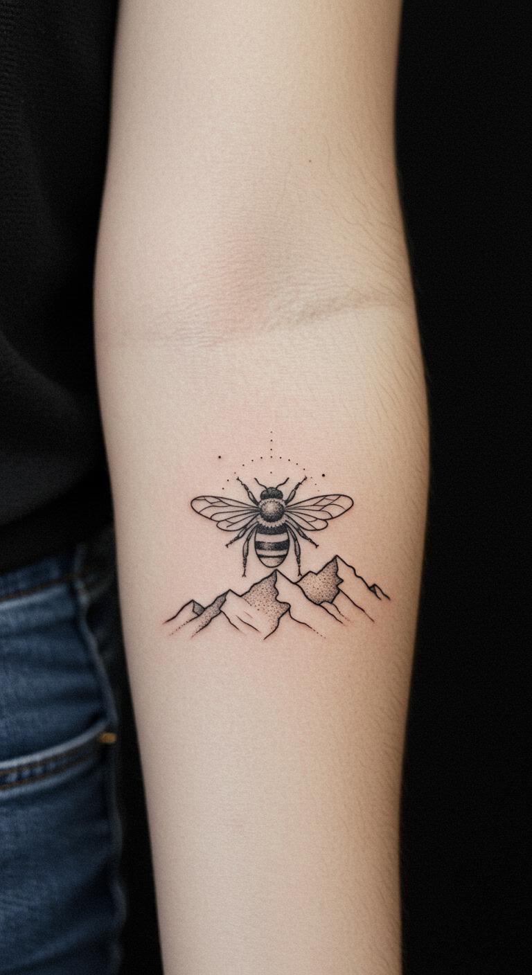Incorporate a bee with a mountain for hard work. This uses bee shapes alongside peaks, showing effort. Fit it on your arm for visibility. Bee-draw on paper with mountains. Look at free insect designs online. Pair it with work routines. Go simple to keep costs low. Test with bee stickers. It buzzes with energy. Personalize the bee’s position. This motif motivates daily.