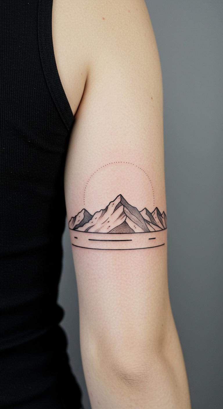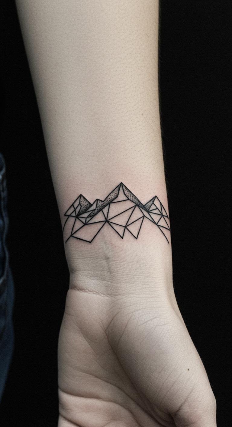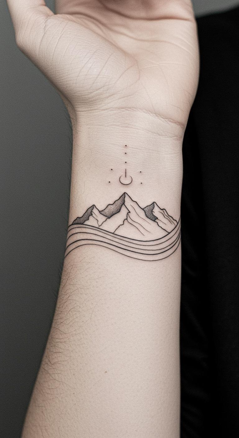 Wrap a mountain around your wrist for a band-like effect. This uses curved lines to circle the area, making it personal and visible. Position it exactly on your wrist. Wrap string around your wrist and draw on it. Check free band tattoo resources online. Wear it during workouts as a reminder. Use single colors to save money. Test with elastic bands marked with designs. It offers a constant, subtle boost. Tailor the wrap to your arm size. This style is practical and everyday-ready.