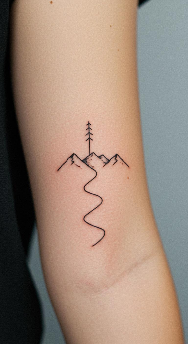 Let your skin do the work by leaving space for the mountain. This technique cuts out the shape from solid lines, making it pop with contrast. Place it on your side or elbow for impact. Cut shapes from paper to plan at home. Search free negative space ideas online and adapt them. Use it as a prompt for evening walks to clear your mind. Go with straightforward lines to cut costs. Apply temporary designs with tape to see how it looks. It creates an airy, modern effect that feels light. Add details like a small path for your story. This method is budget-friendly and highlights natural beauty.