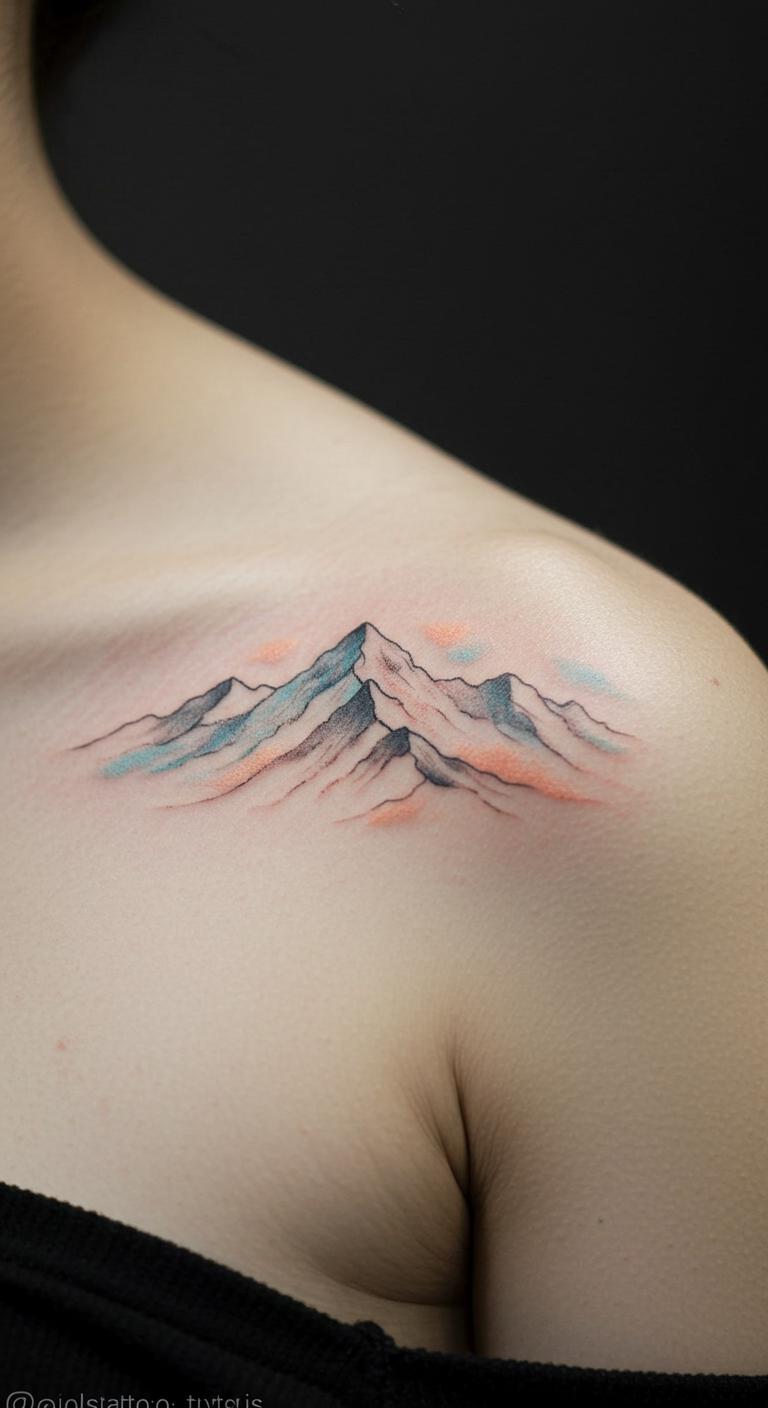 Add faint colors for a nature feel. This uses earth tones on peaks sparingly. Try it on your shoulder for pop. Color in sketches lightly. Find free colored nature designs online. Match it to outdoor gear. Limit colors to save. Test with colored pencils. It brings warmth. Customize shades for scenes. This touch enhances appeal.