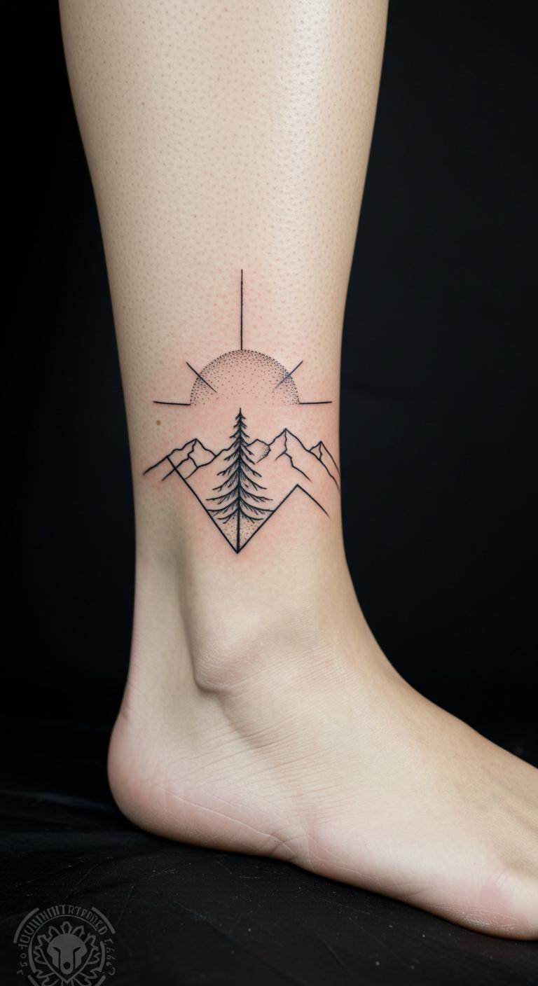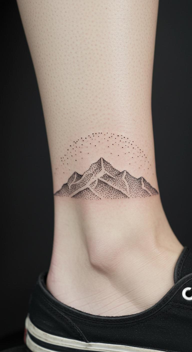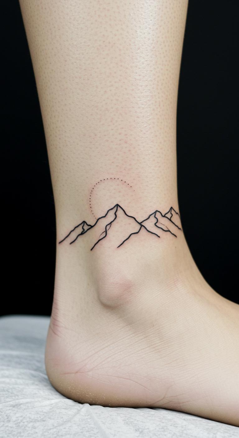 Go for a solid mountain silhouette on your ankle for a grounded look. This fills in the shape simply, keeping it low-key. Place it low on your body. Trace silhouettes on your shoe for ideas. Find free outline templates online. Pair it with daily steps to track progress. Stick to basic shades for affordability. Use shadow cutouts on your skin to preview. It conveys stability with ease. Add unique twists like a base line. This idea is simple and fits active lifestyles.