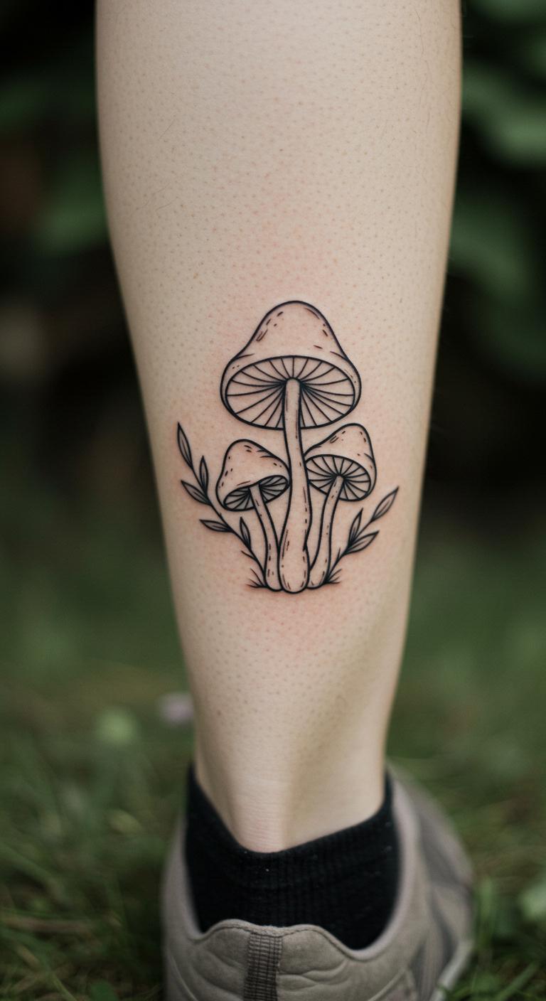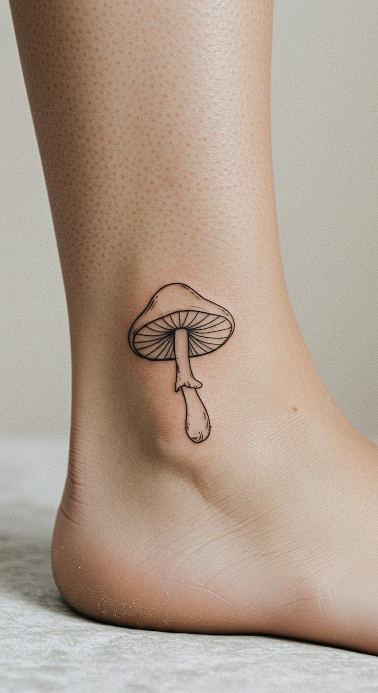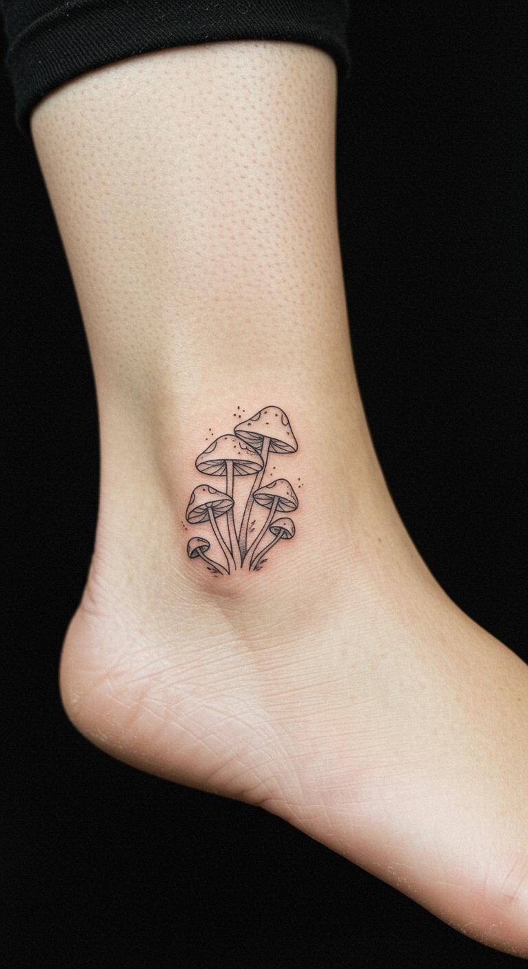 Group a few tiny mushrooms for a clustered effect. This design feels playful yet understated. Sketch it yourself on paper with a fine-tip marker to test sizes. Aim for three or four shapes close together. Look for artists at community fairs; they often offer deals around $50. Choose spots like the ankle for easy hiding. Add a personal twist, like varying the stems. Bold the key: try home sketches. This approach saves money and sparks ideas. Wear it as a subtle accent with your outfits. Simple actions, like drawing daily, make the process fun and affordable.