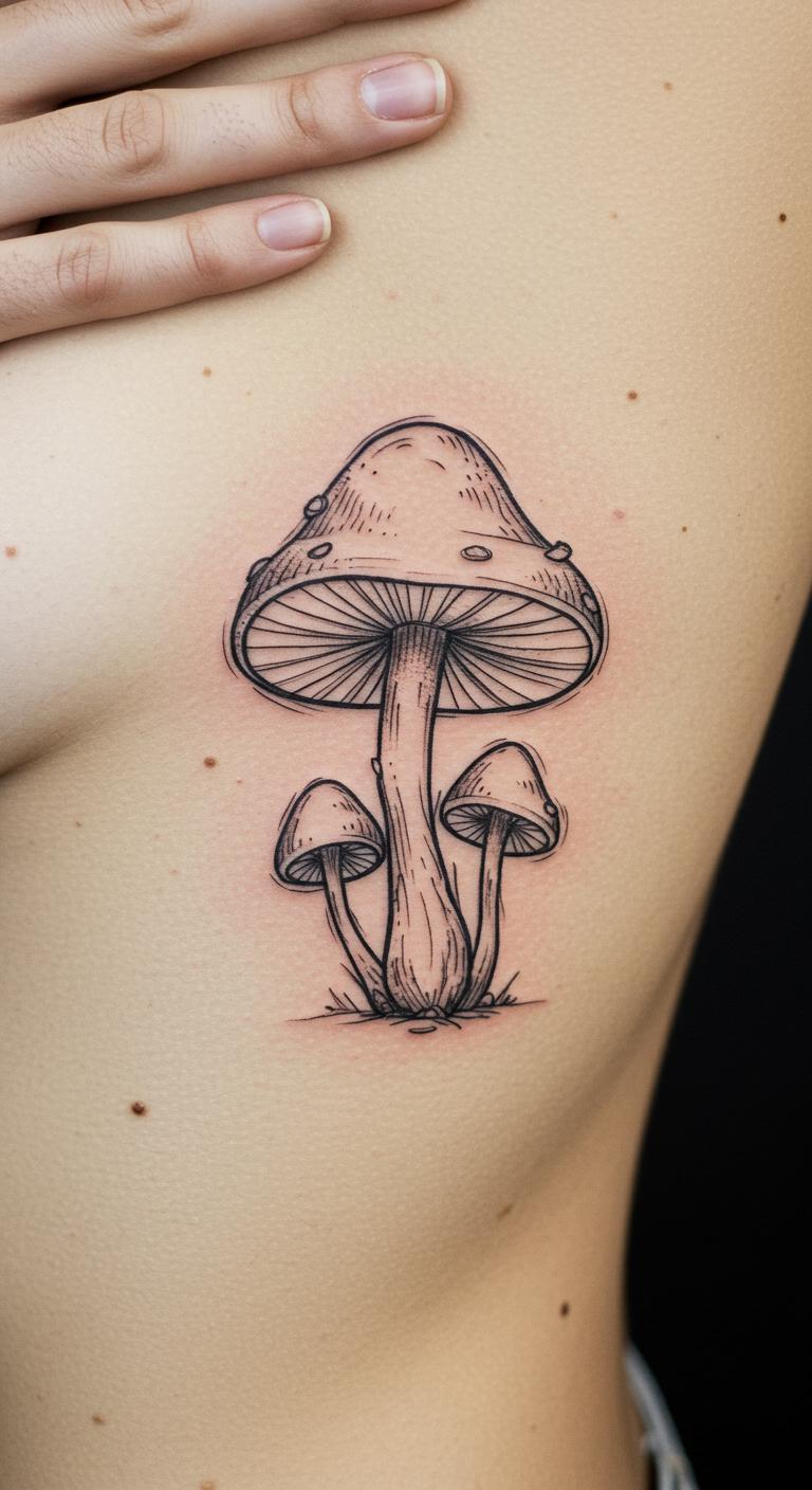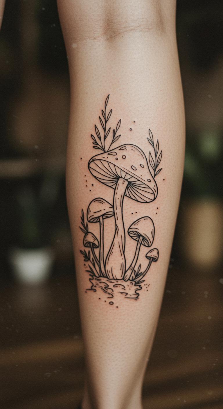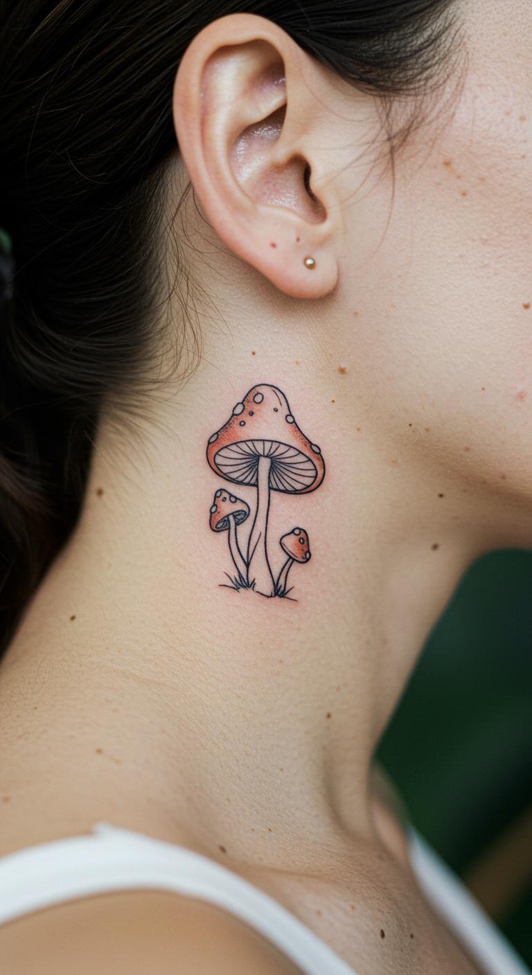 Group a few tiny mushrooms for a clustered effect. This design feels playful yet understated. Sketch it yourself on paper with a fine-tip marker to test sizes. Aim for three or four shapes close together. Look for artists at community fairs; they often offer deals around $50. Choose spots like the ankle for easy hiding. Add a personal twist, like varying the stems. Bold the key: try home sketches. This approach saves money and sparks ideas. Wear it as a subtle accent with your outfits. Simple actions, like drawing daily, make the process fun and affordable.