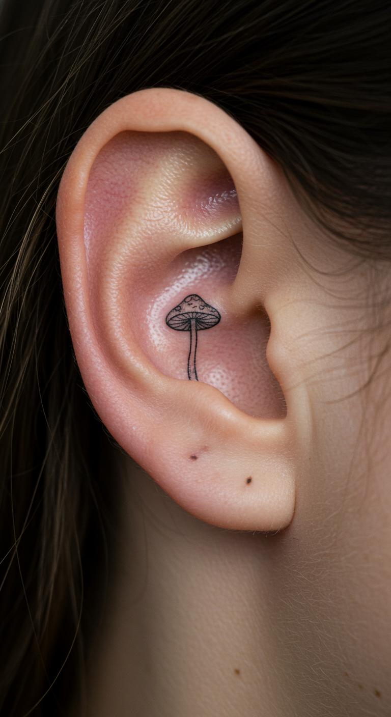 Go tiny behind the ear for subtlety. Outline a single mushroom. Draw it on paper with fine pens. Quick and free. Prices start at $40. Bold the key: use fine pens. This refines your idea. Make it a hidden gem. Simple prep works wonders.