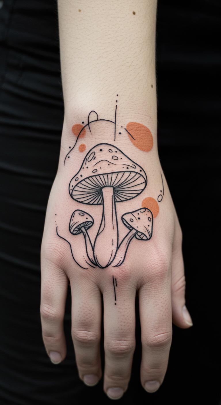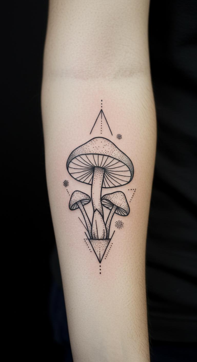 Mix a mushroom with geometric shapes for a modern vibe. Add triangles or squares around the cap for interest. Draw this at home using a ruler and pencil on paper. It takes minutes and costs nothing. Search for affordable artists online who do geometric work; sessions might run $80. Place it on the forearm for visibility. Bold the key: use household tools. This lets you experiment without pressure. Turn it into a symbol of balance in your life. Quick sketches help refine your vision before the ink.