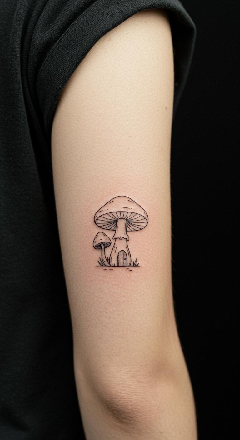 Imagine a mushroom with a little door, adding a fairy-tale touch. This whimsical idea sparks joy. Practice by drawing on paper with basic pens. Add the door as a small rectangle on the stem. Local tattoo shops often have flash designs for $60 or less. Put it on your upper arm for a personal spot. Bold the key: start with paper drawings. It keeps things light and budget-friendly. Use this tattoo to remind you of new beginnings. Simple prep makes the whole experience smooth.