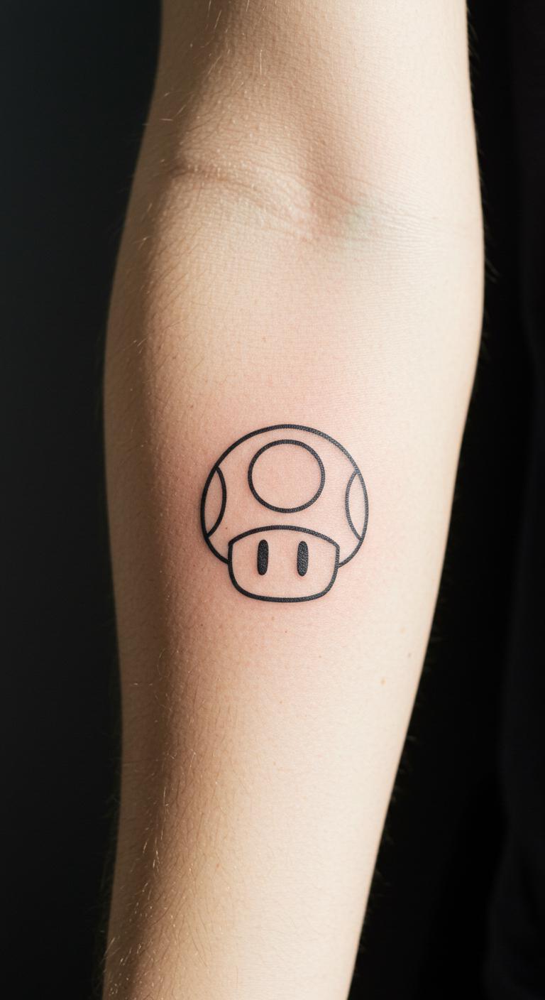 Go for a game-inspired mushroom, such as a classic power-up. Make it minimalist with just the key features. Draw it freehand at home using markers. This saves money upfront. Find budget artists online for about $65. Put it on the forearm to show off. Bold the key: freehand at home. Turn it into a fun emblem. Easy drawing sessions make planning enjoyable.