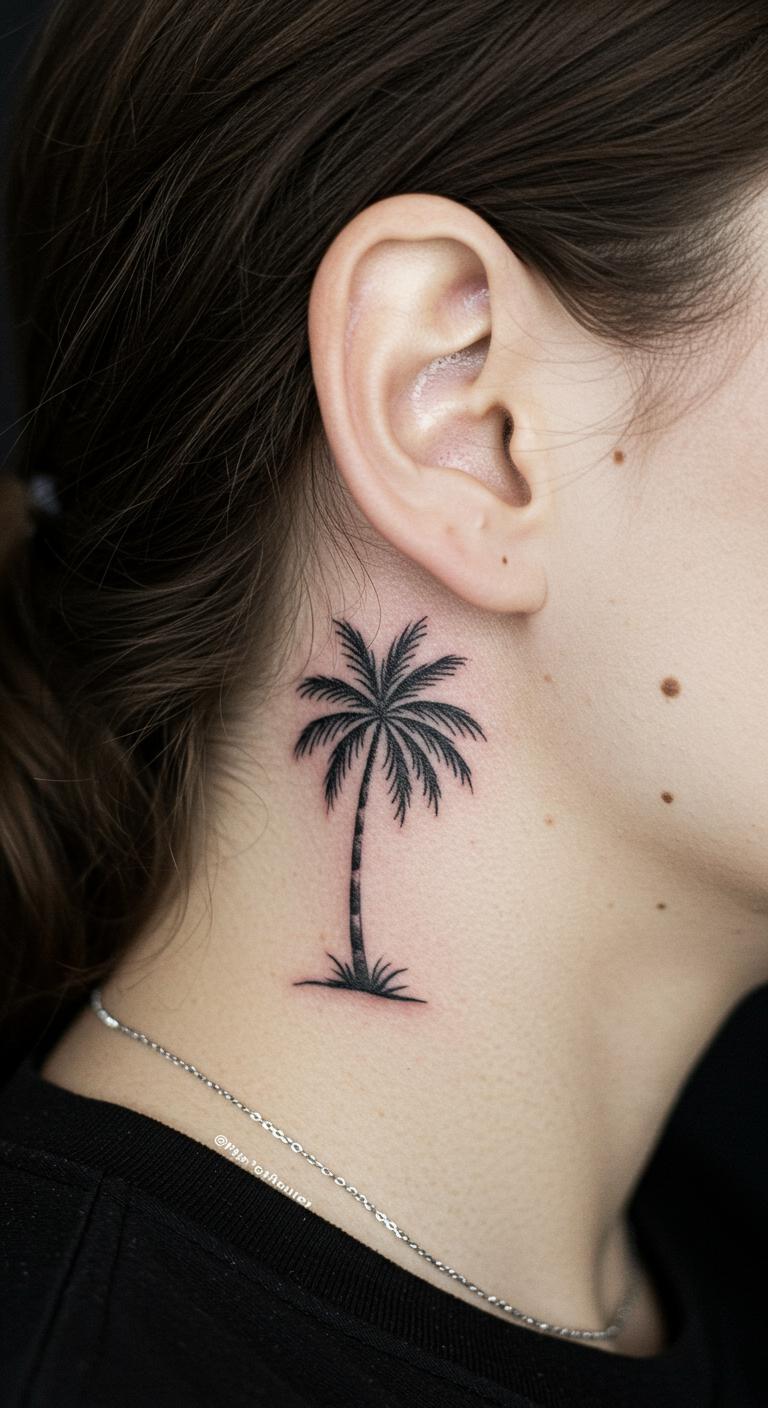 A palm tree silhouette brings beach vibes to your skin without much fuss. Draw it as a simple outline with a few strokes. Try this at home with henna from your craft supplies for a temporary version. Stick it on your ankle for a subtle spot. Opt for black ink to keep costs down at the tattoo shop. This design symbolizes relaxation, so link it to your favorite vacation spot. Use free online templates to sketch ideas. Artists often have deals for small pieces. Make it unique by adding a tiny curve. You’ll love how it looks understated. It’s perfect for everyday wear. Just clean the area well before getting inked.