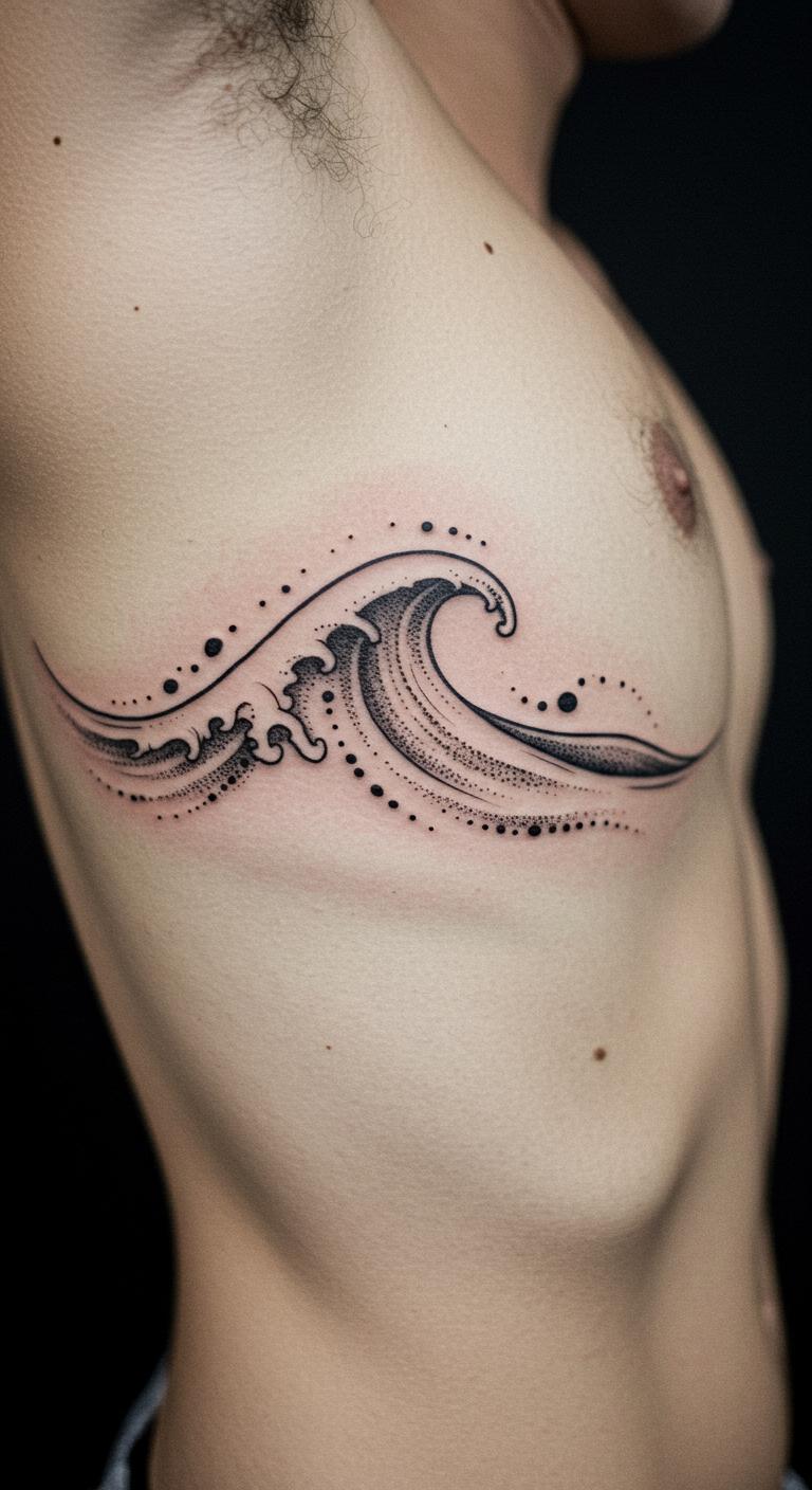 Dots along a wave line add texture. Draw with dots included. Use dot stickers for trials. Hide on your ribcage. Ink it in black affordably. It evokes flow, so personalize. Web designs are accessible. Artists offer deals. Make dots uneven. Handle with ease.