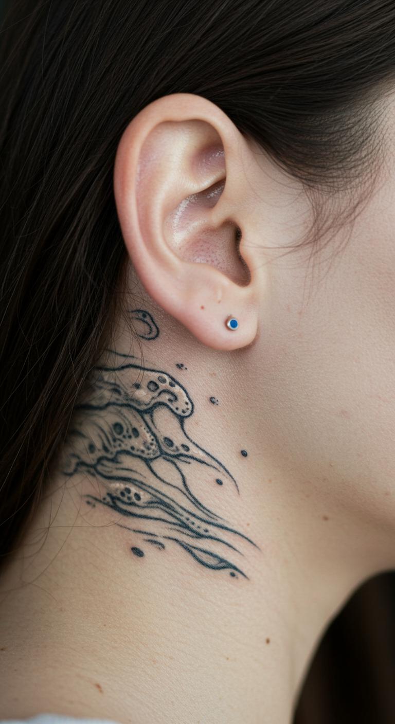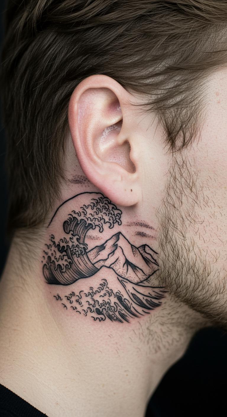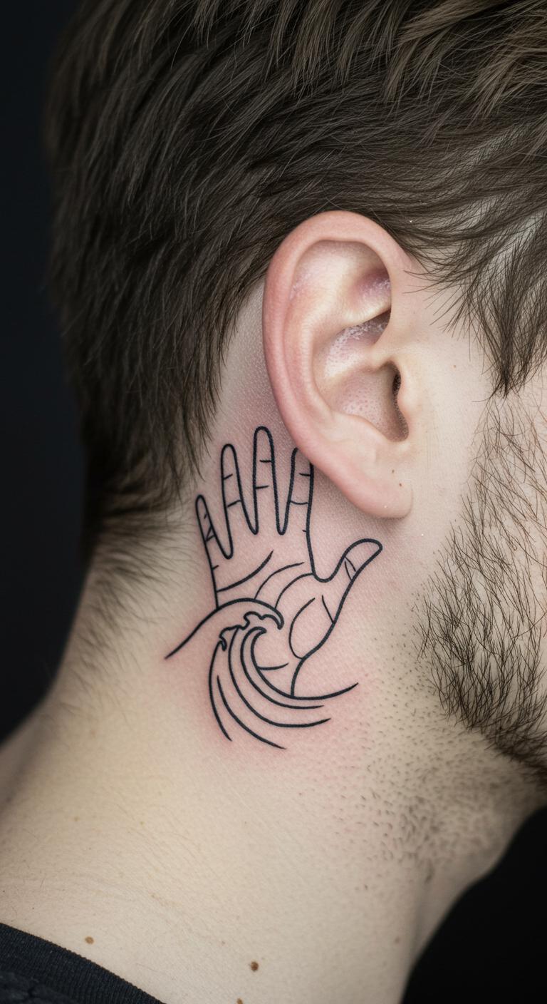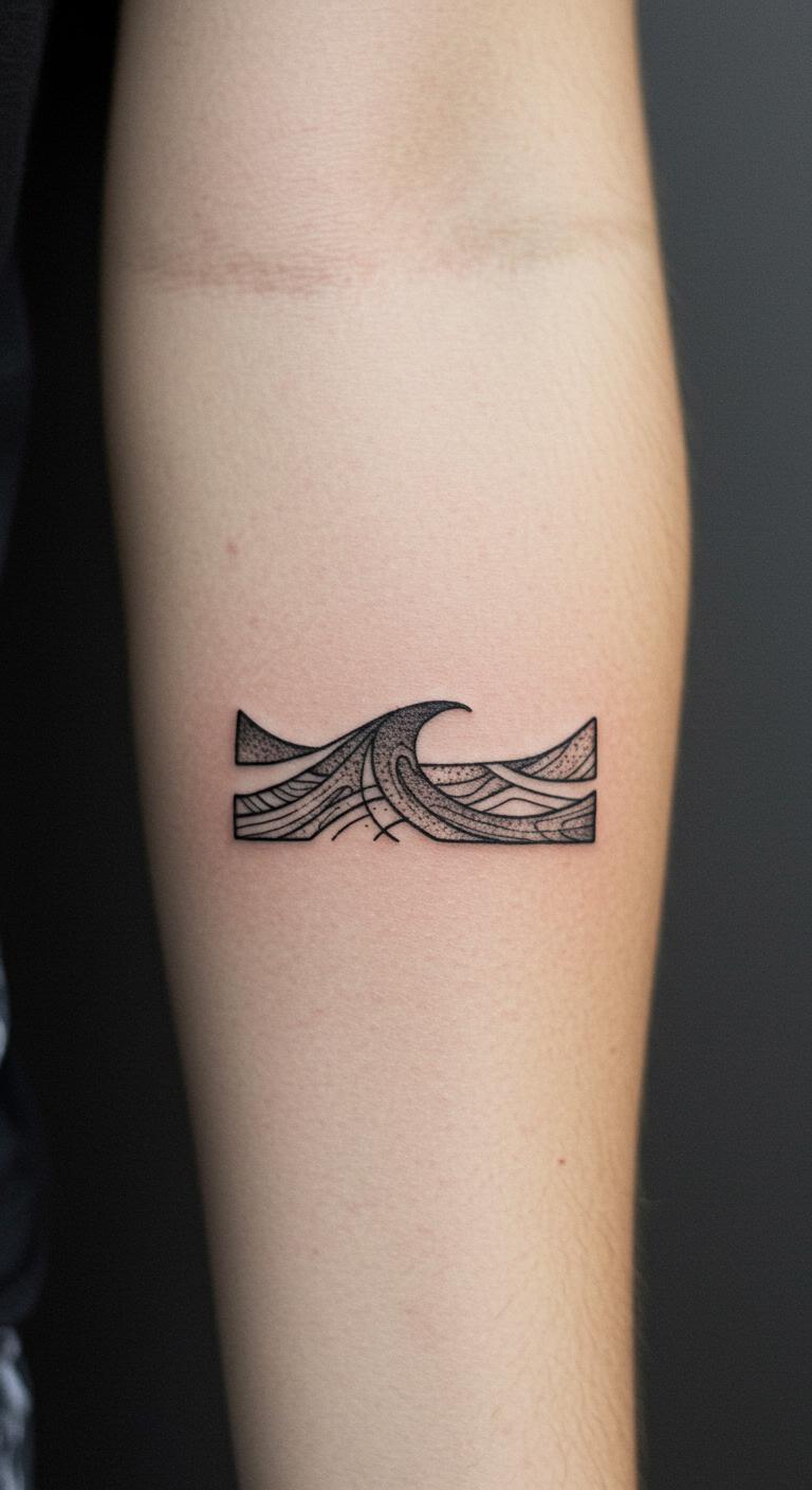 An abstract symbol lets you play with waves in a modern way. Start by doodling geometric forms at your desk. Use free apps to design it digitally. Put it behind your ear for discretion. Go with fine lines to save on ink costs. It stands for balance, so connect it to your routine. Print templates from the web for ideas. Find artists who do quick sessions cheaply. Add a small twist like a dot pattern. This keeps it personal. Care for it with basic bandages from your kit.
