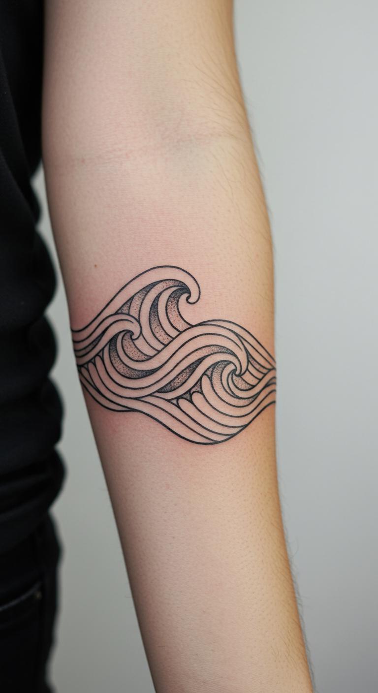 Think of a basic wave as your go-to for a minimalist ocean tattoo. This design uses just a few straight lines to mimic the sea’s flow. Start with a small sketch on paper to visualize it. For a budget-friendly tip, use a temporary tattoo kit from a dollar store to test the look before committing. Place it on your wrist for easy hiding. Keep it black ink only to maintain that timeless vibe. Pair it with daily ocean sounds on your phone for inspiration. This idea works great for first-timers. Go for a local artist who specializes in fine lines. They charge less than fancy studios. Add a personal twist, like making the wave slightly asymmetric. You’ll end up with something meaningful yet simple. It’s all about that clean feel.